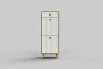 این مدل دارای یک کشوی کوچک کاربردی در بخش بالایی و دو فضای دربدار در پایین است که بهصورت مجزا باز میشوند و امکان نظمدهی کامل به کفشها را فراهم میکنند. پایههای کوتاه و مورب چوبی نیز، هویت مدرن و اسکاندیناویایی محصول را تقویت کردهاند.