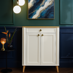 سطح رویه با طرح چوب روشن و پایههای مخروطی چوبی، حس گرمی و طبیعی بودن را به محصول اضافه کرده و تضاد جذابی با بدنه روشن ایجاد میکند. وجود یک کشوی باریک در قسمت بالا و دو درب با قاببندی برجسته، محصول را هم کاربردی و هم چشمنواز کرده است.