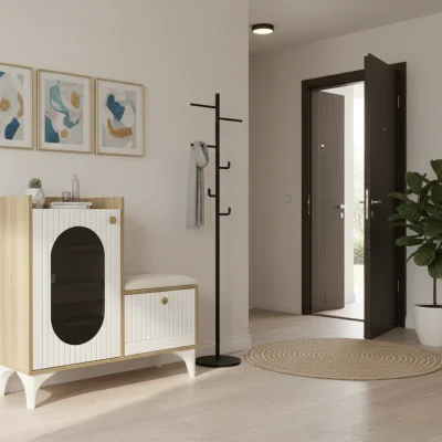 این جاکفشی با بدنه ملامینه درجه یک ساخته شده تا در برابر خط و خش و ضربه مقاوم باشد. دربهای MDF با روکش وکیوم لوکس، جلوهای مدرن و ماندگار ایجاد کرده و در برابر رطوبت و تغییر رنگ مقاومت بالایی دارند. بهکارگیری یراقآلات درجه یک، باز و بسته شدن نرم و بیصدا را تضمین میکند. طراحی شیک و مینیمال آن، بهراحتی با هر سبک دکوراسیون داخلی هماهنگ میشود و فضای ورودی شما را مرتب و زیبا نگه میدارد.
