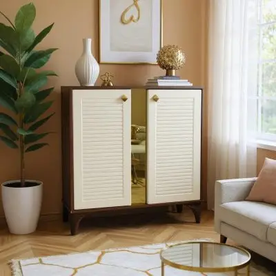 جاکفشی مدرن ملامینه MDF مدل آرشین با طراحی لوور و آینه داخلی